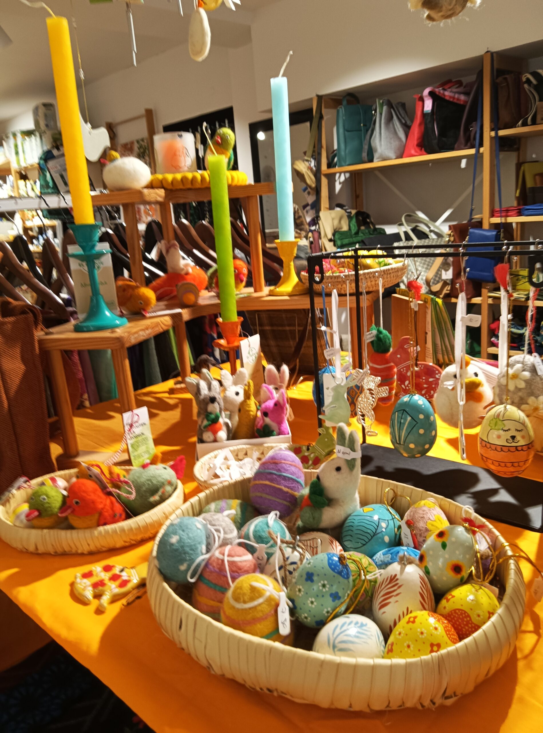 Ob hübsche Dekoration für Ihren Osterbaum, bunte Servietten für den Ostertisch oder feine Schokohasen, Eier und Pralinen- Alles finden Sie bei uns. Hergestellt von unseren Fair Trade Partnern aus Nepal, Indien oder Vietnam. Die süssen Osterhasen und andere Köstlichkeiten fertigt in feiner Handarbeit unser langjähriger Partner Emmentaler Backwaren.